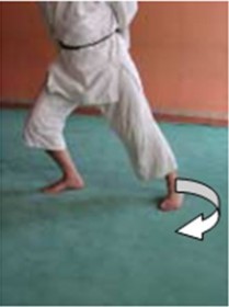 Vandaar werkt men best met ontgrendelde knieën, lichtjes gebogen en de draaiing te beginnen door de heup vrij te maken, voordat de voet en dus de knie steun vindt op de grond (figuur 14 en 15).